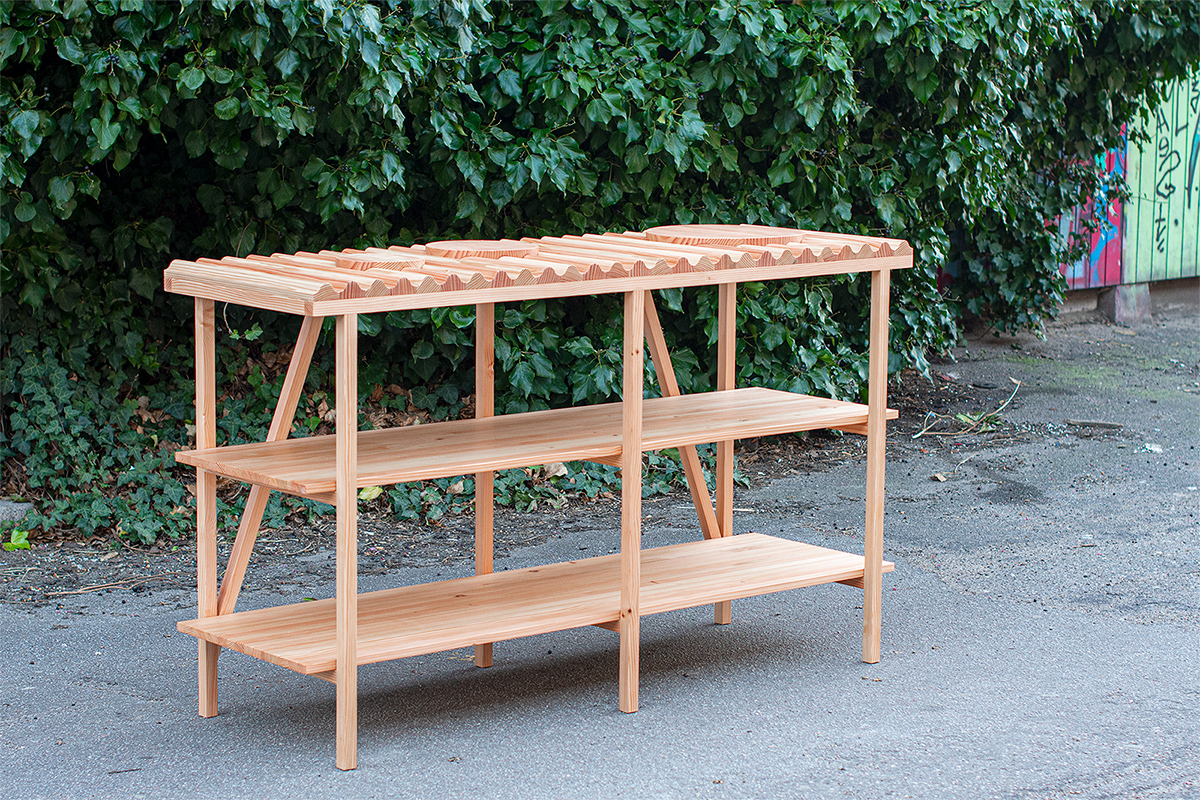 ‘The two bottom shelves can be used for storing objects the user can rotate into the display, creating an ever-changing expression.